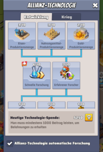 Hilfe / Zeit optimieren Hilfe / Zeit optimieren Upgrade im Allianz Zentrum Ihr habt sicher schon alle mal dieses Symbol über dem Allianz-Zentrum gesehen. Dies bedeutet, dass ihr eure Überlebenden upgraden könnt. Hier jedoch blind auf den Button zu drücken